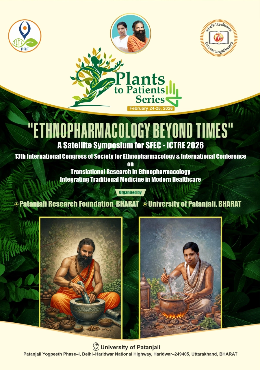 Patanjali Research Foundation, in collaboration with the University of Patanjali, proudly presents the fourth edition of Plants to Patients Series, a global scientific platform dedicated to rethinking ethnopharmacology and its role in modern healthcare.
